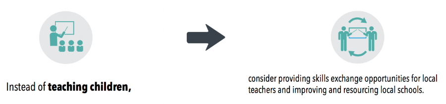 The best way to ensure this is to give local communities and organisations the primary say in requesting and recruiting skilled volunteers. After all they know best what skills and assistance they would benefit from and what their priorities are at any given time. When skilled volunteering placements align with local priorities, the time it takes the host organisation or community to prepare and facilitate the volunteer is time invested in the community's own goals. When it is not, it can become precious time and resources diverted from community priorities towards something that is peripheral.